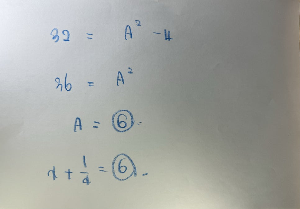 좌변에 4루트2를 대입하면 , 32 는 우리가 구하는 x 플러스 x분의 1을 A로 두고 A의 제곱 마이너스 4야