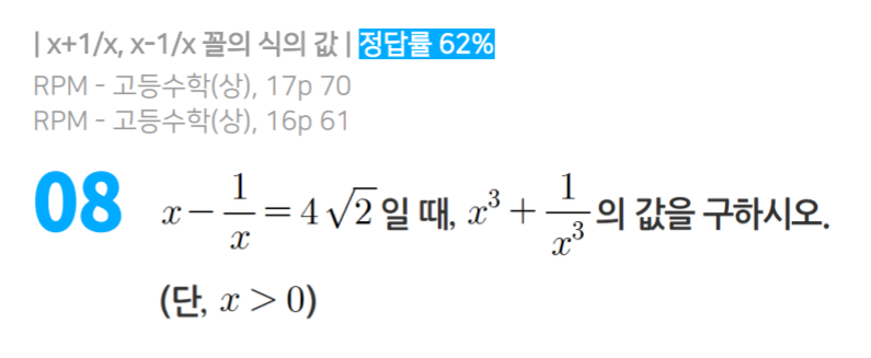 역수의 합이나 역수의 차의 완전 제곱 또는 완전 세제곱이 변형식이야~